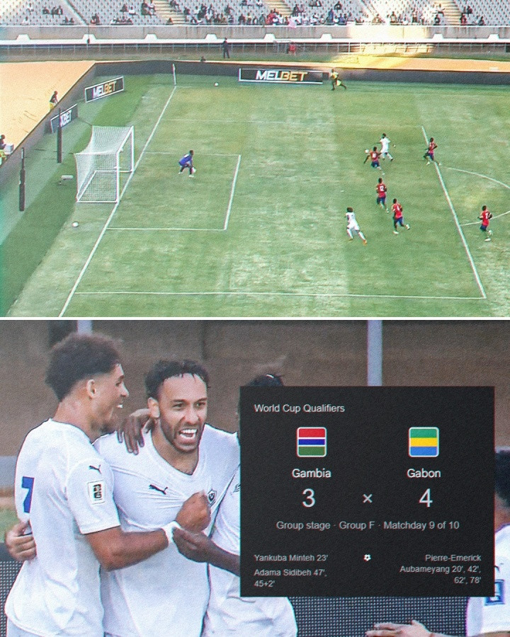 直播吧10月10日讯世预赛非洲区F组第9轮比赛,加蓬客场4-3战胜冈比亚,36岁的加蓬前锋奥巴梅扬上演大四喜,一己之力为加蓬拿下了这场胜利!